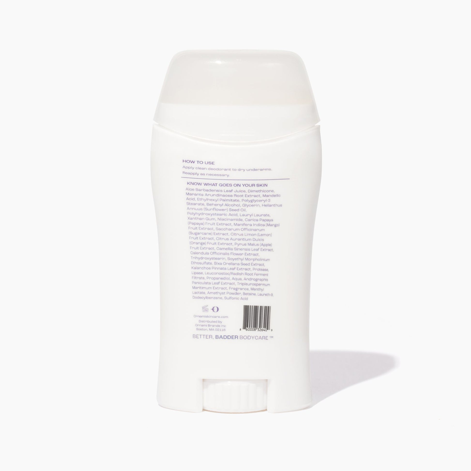 This product blends mandelic acid, aloe vera, and fruit extracts to target stubborn odor and excess moisture while also reducing friction and protecting skin from chafing. Fresh Start is clean, aluminum-free, vegan and cruelty-free.